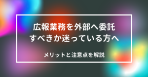 広報業務を外部へ委託すべきか迷っている会社様向けの記事です。委託すべきメリットと注意点について解説させていただきました。是非、参考にしてみて下さい。
